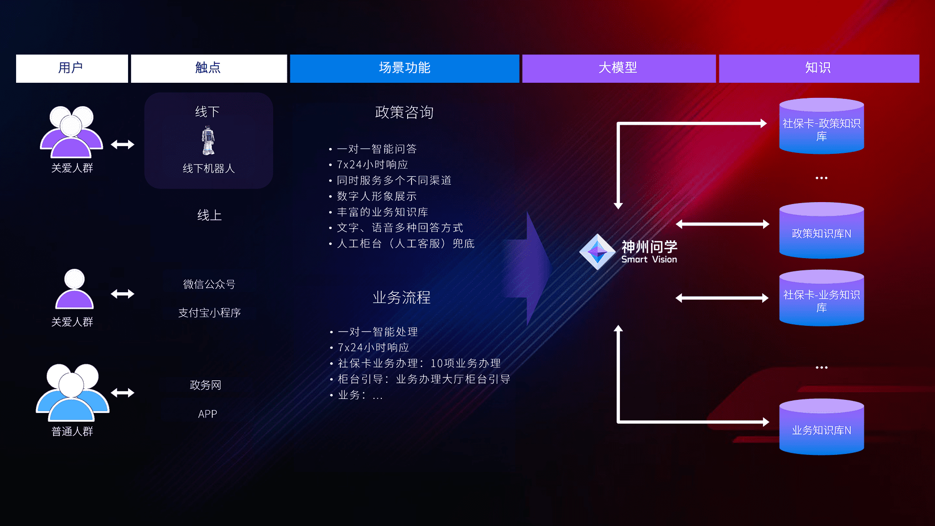 • 线上线下全覆盖:线上提供微信公众号、、、支付宝小程序、、政务网、、app多种渠道,,与线下机器人形成完整服务体系。。。